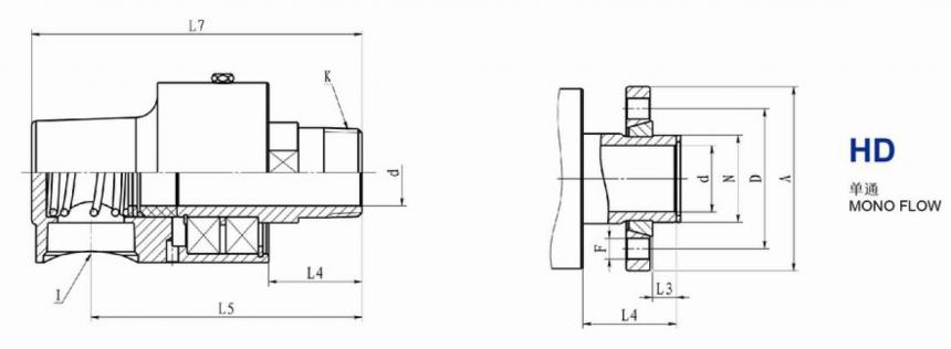 H型旋轉接頭平衡式端面密封結構是利用彈簧的彈力推動密封摩擦副和密封端面緊密貼合,并且能做一定的自動補償調心,保證其密封的可靠性和耐用性。H型旋轉接頭主要分為單通式HD系列旋轉接頭及雙通式HS系列旋轉接頭兩個種類六個型號的標準型號;還有根據此H型旋轉接頭結構原理改進的高速H型旋轉接頭、耐高溫H型旋轉接頭。