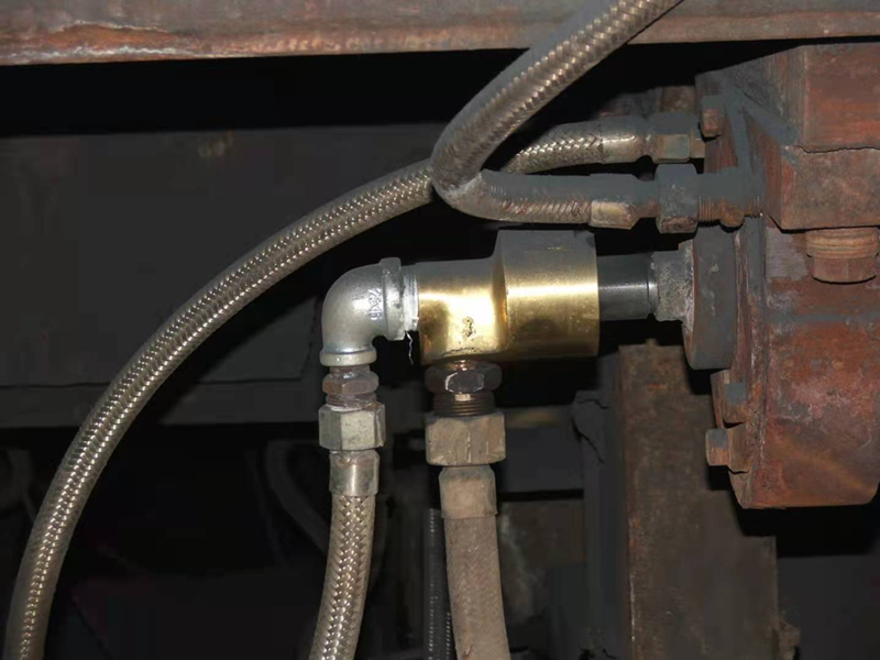 剛裝上不久H型旋轉(zhuǎn)接頭(銅旋轉(zhuǎn)接頭)就泄漏,這是很常見,經(jīng)常發(fā)生的情況,通常并不是旋轉(zhuǎn)接頭質(zhì)量本身的問題;很多情況的發(fā)生是沒有正確安裝造成的,導致剛裝上就發(fā)生了泄漏。可以仔細觀擦下圖中的現(xiàn)場照片,可以很明顯的發(fā)現(xiàn)配套的金屬軟管已經(jīng)成了“麻花狀”。